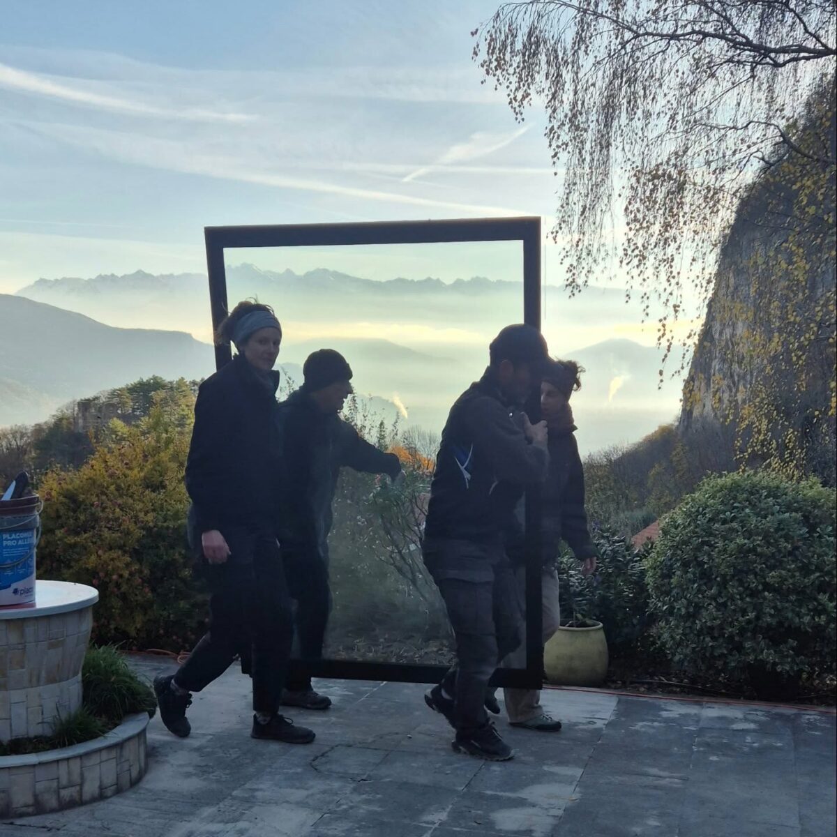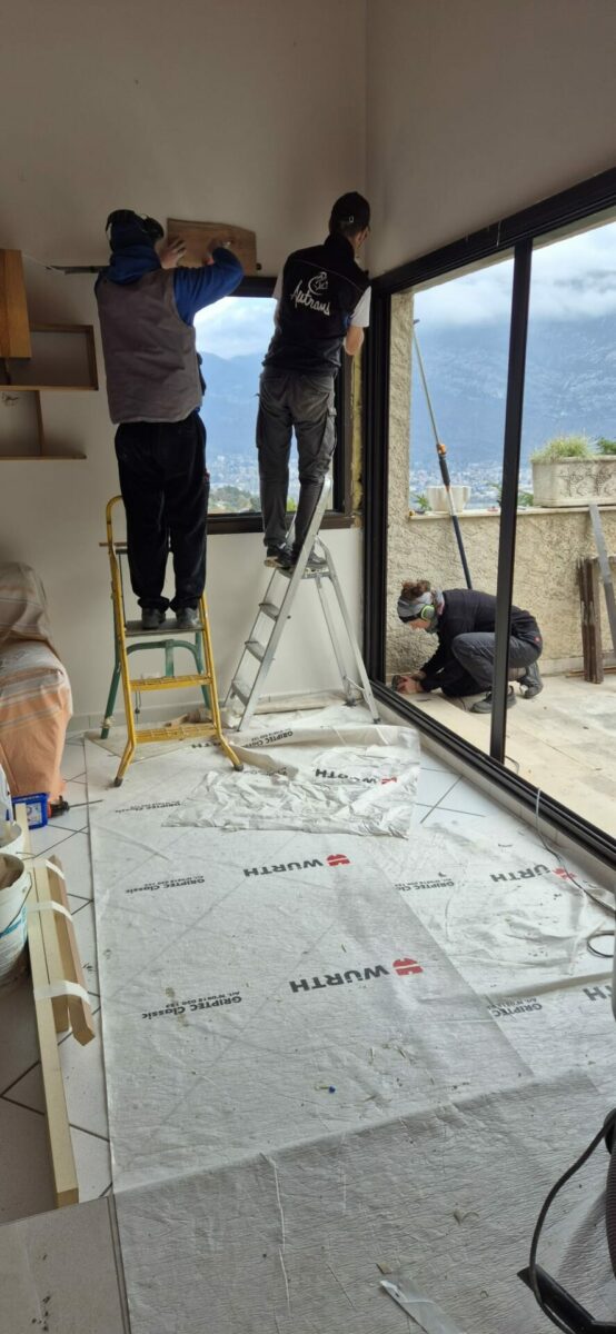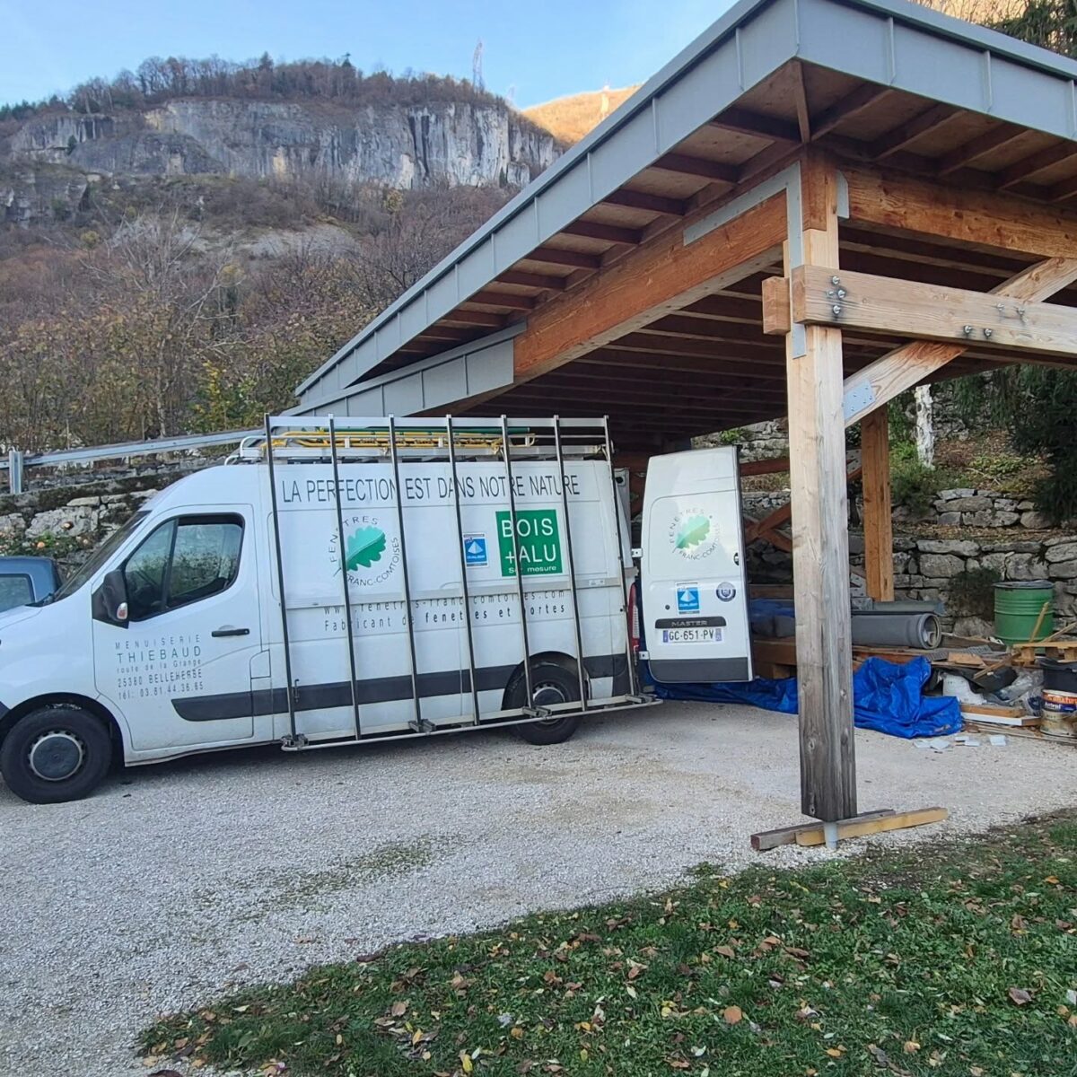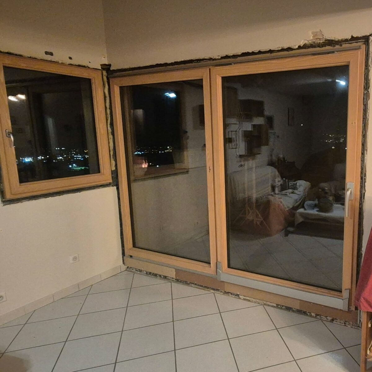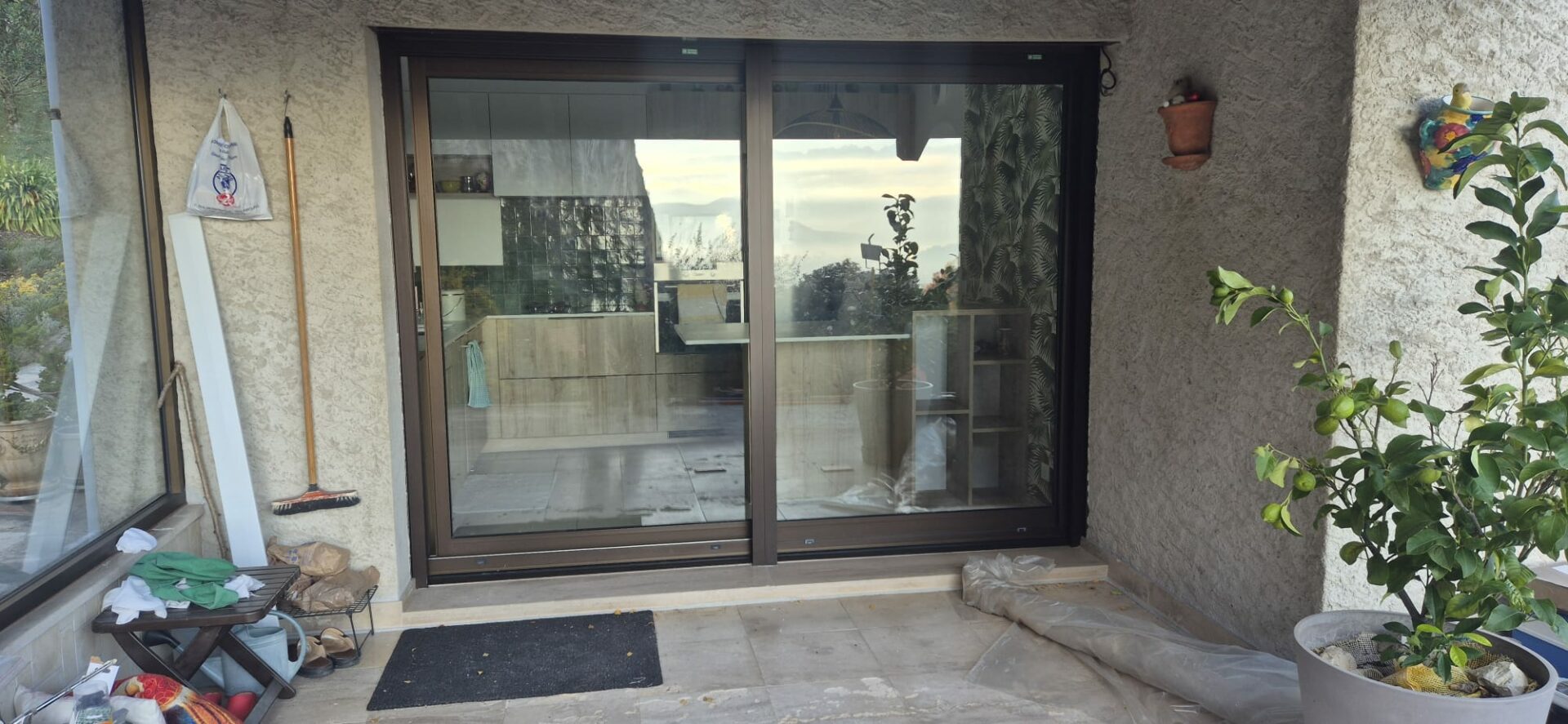 Très beau chantier participatif à Sassenage, où nous avons été sollicités pour remplacer des portes-fenêtres en aluminium coulissantes par des portes-fenêtres Caméléwood en bois et aluminium, double vitrage, coulissantes à translation.